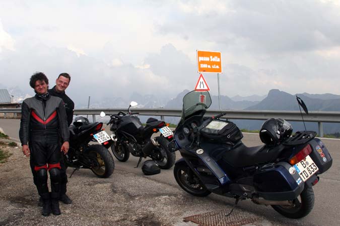 <img src= am Mendelpass unsere Reisebegleiter: GSXR1000 (K4) Limited Edition, Xtra Raptor und der T4 Grillabend am Castel Latemar! Live Musik mit Kessi! Wir tun etwas für unsere Gesundheit! Obst hilft und viel hilft viel!!! Der große Kessi und der noch größere Vossi am Sella Happy birthday Diddi! Bassano del Grappa nach einer ausführlichen Grappaprobe sehen wir wieder richtig gut aus! und mit F1 endet meine Fahrt am Gardasee in Torri del Benaco! Die Benzinpumpe hat sich ausgeklingt und nun muss der T4 her!