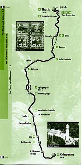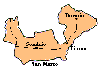 Tirano, von dort aus über den Aprica-Pass nach Edolo. Dann über Breno, Lóvere am Westufer entlang nach Iseo. |